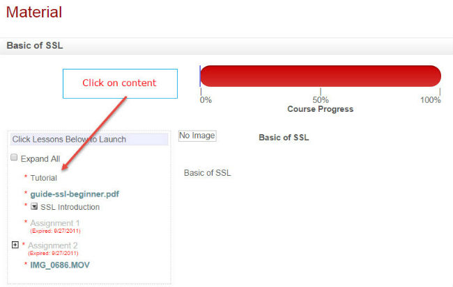 - Select which course you want to take from the My Courses table. Click the green button to see what Course Material (videos, reading materials, and quizzes) are available for the course.